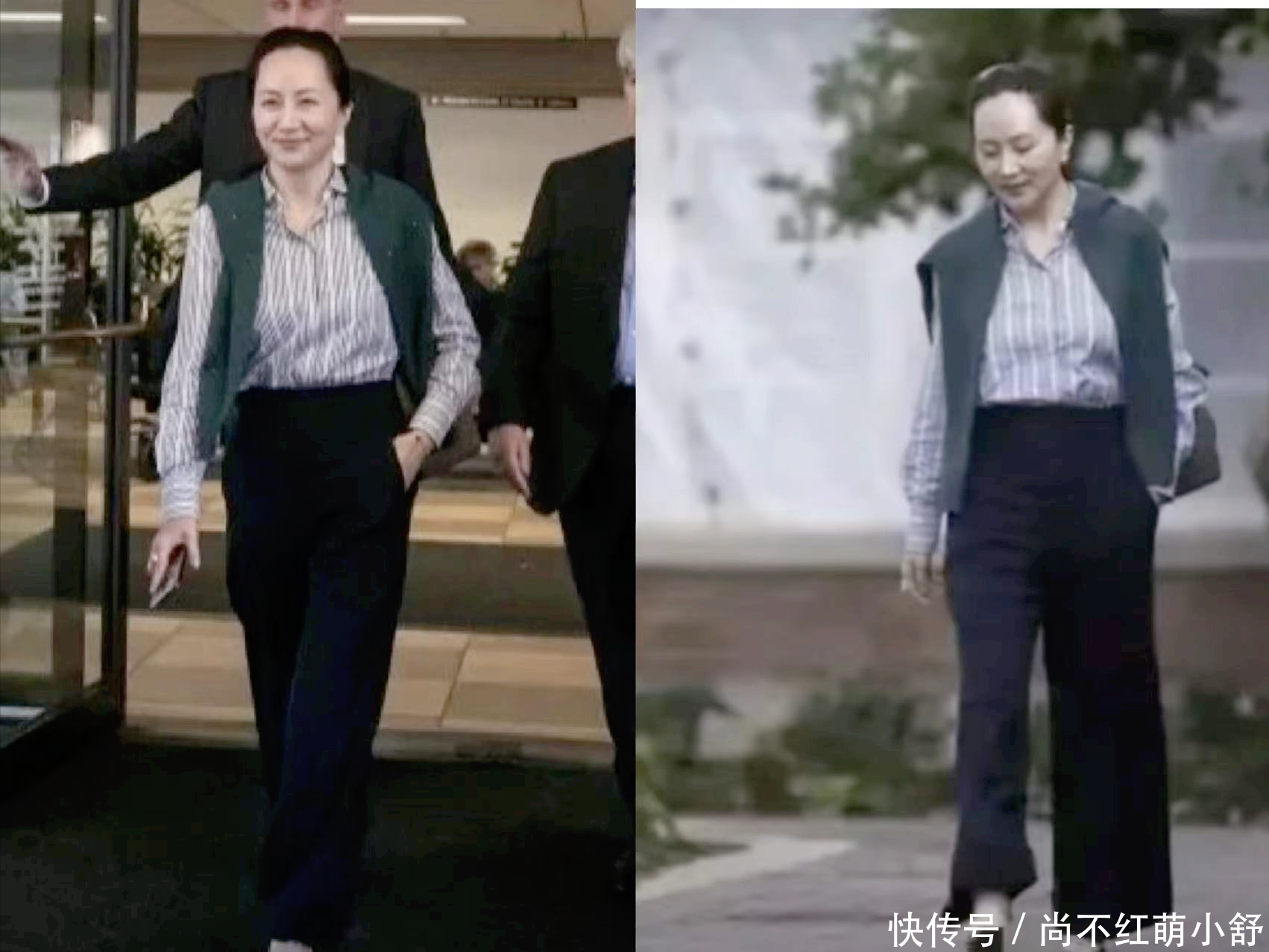 无论是正式场合还是私下出行,这套搭配都是孟晚舟展现利落一面的不二之选。