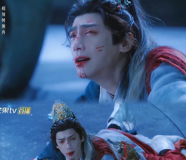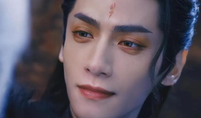 为了维持上镜好看的形象,他过度减肥,身形瘦得像竹竿,肩线比女主还窄,厚重的古装穿在身上像竹竿挑衣,再加上绯红眼影、亮闪高光的浓妆,完全丢失了武侠男主的霸气与男子气。